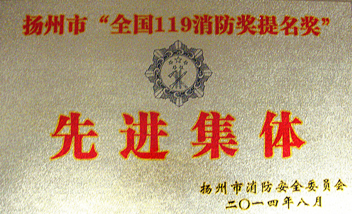 我司榮獲揚(yáng)州市首屆“全國119消防獎(jiǎng)提名獎(jiǎng)”