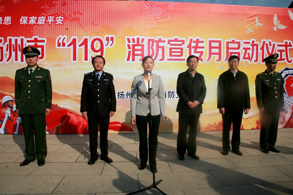 11月5日上午,揚(yáng)州市公安局消防支隊(duì)在瘦西湖風(fēng)景區(qū)舉行“119”消防宣傳月啟動(dòng)儀式。揚(yáng)州市副市長張寶娟、市政府副秘書長王玉軍、市公安局副局長劉毅、消防支隊(duì)主要負(fù)責(zé)人和瘦西湖消防志愿者、揚(yáng)汽集團(tuán)以及全市消防重點(diǎn)單位負(fù)責(zé)人、學(xué)生代表200余人參加了活動(dòng)。