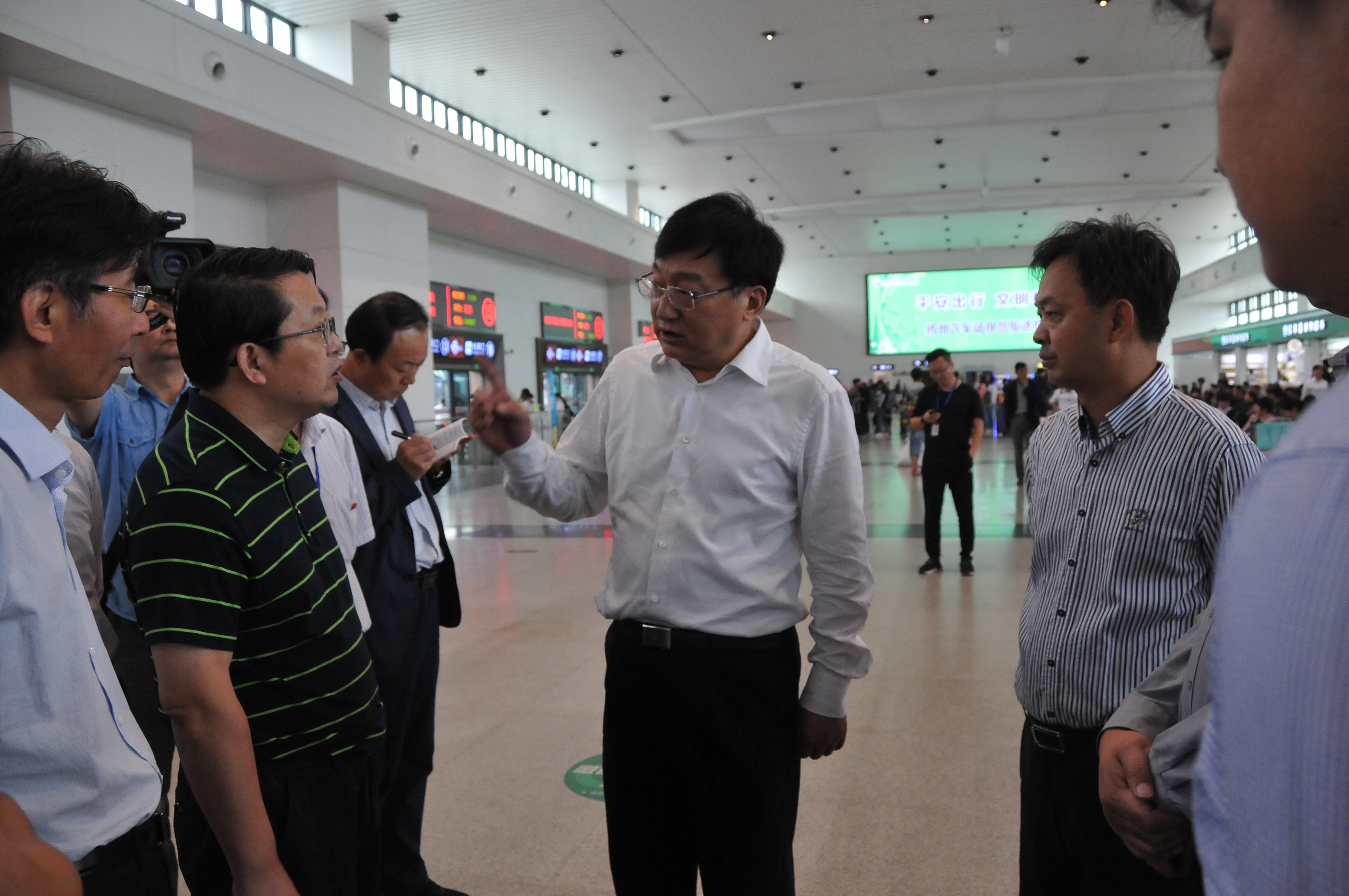 9月30日上午,揚州站人流如織,車站已經(jīng)提前進入節(jié)日運輸模式。上午11時許,揚州市副市長丁一帶領(lǐng)相關(guān)人員來到西部樞紐揚州客運站,檢查節(jié)日安全工作。揚州市交通局局長徐斌,揚州市交通產(chǎn)業(yè)集團董事長、總經(jīng)理、黨委書記凌衛(wèi)東,揚汽集團黨委書記、副總經(jīng)理韓滿陵等陪同。