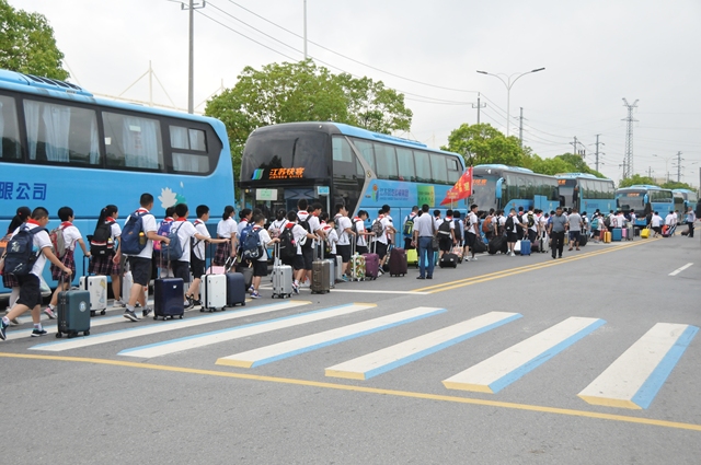 江蘇揚(yáng)汽集團(tuán)承擔(dān)了此次新生運(yùn)輸任務(wù),由旅游出租分公司牽頭,抽調(diào)快客、快鹿等各有車(chē)單位的大客車(chē)38輛,運(yùn)送樹(shù)人中學(xué)師生近2000人。