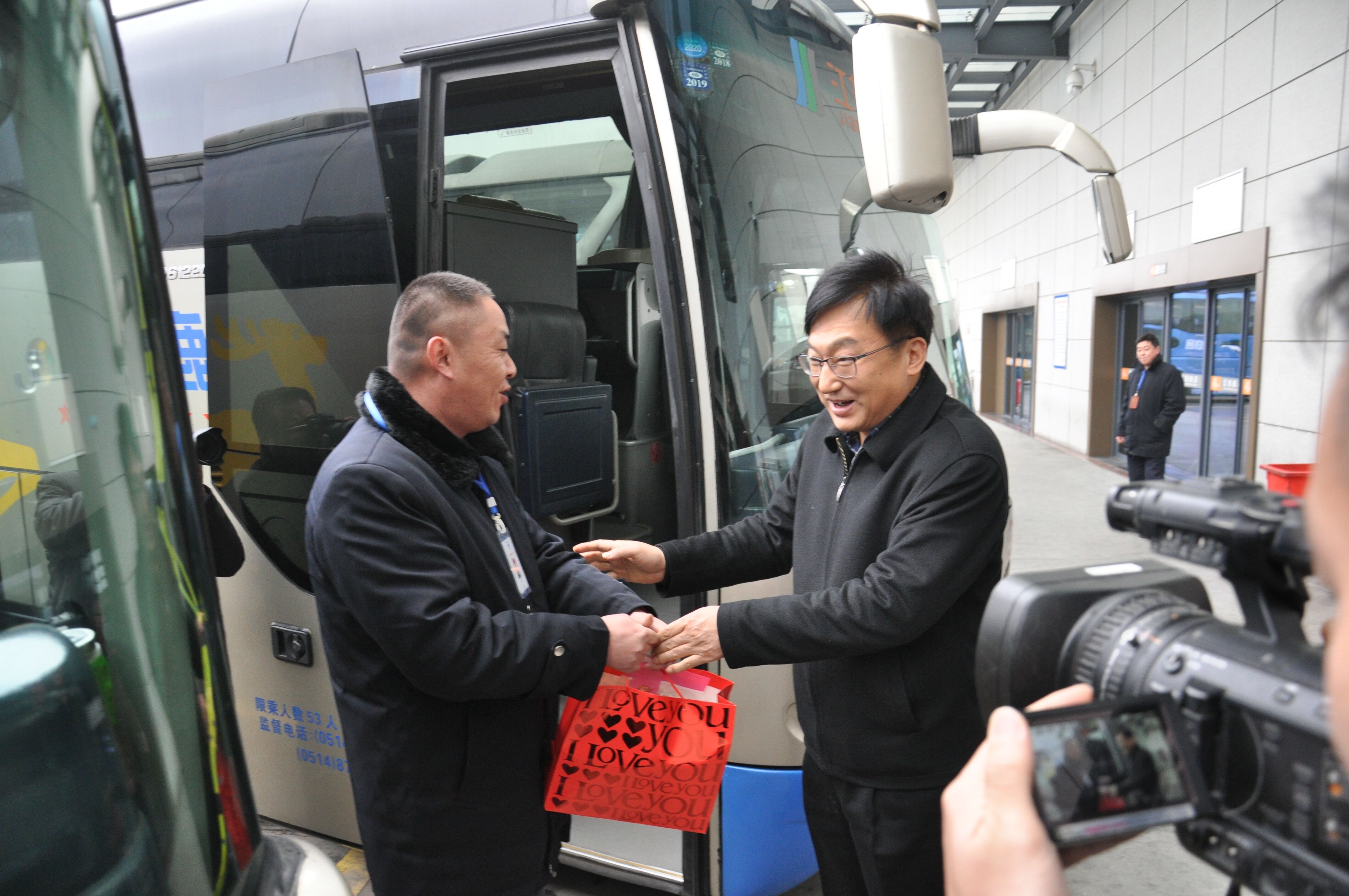 會議結(jié)束后,丁市長一行前往公交和揚汽的場站,對一線駕駛服務人員進行慰問。丁市長還登上揚汽的大巴車,給旅客送上了象征吉祥如意的桔子,祝福大家一路平安,闔家幸福。