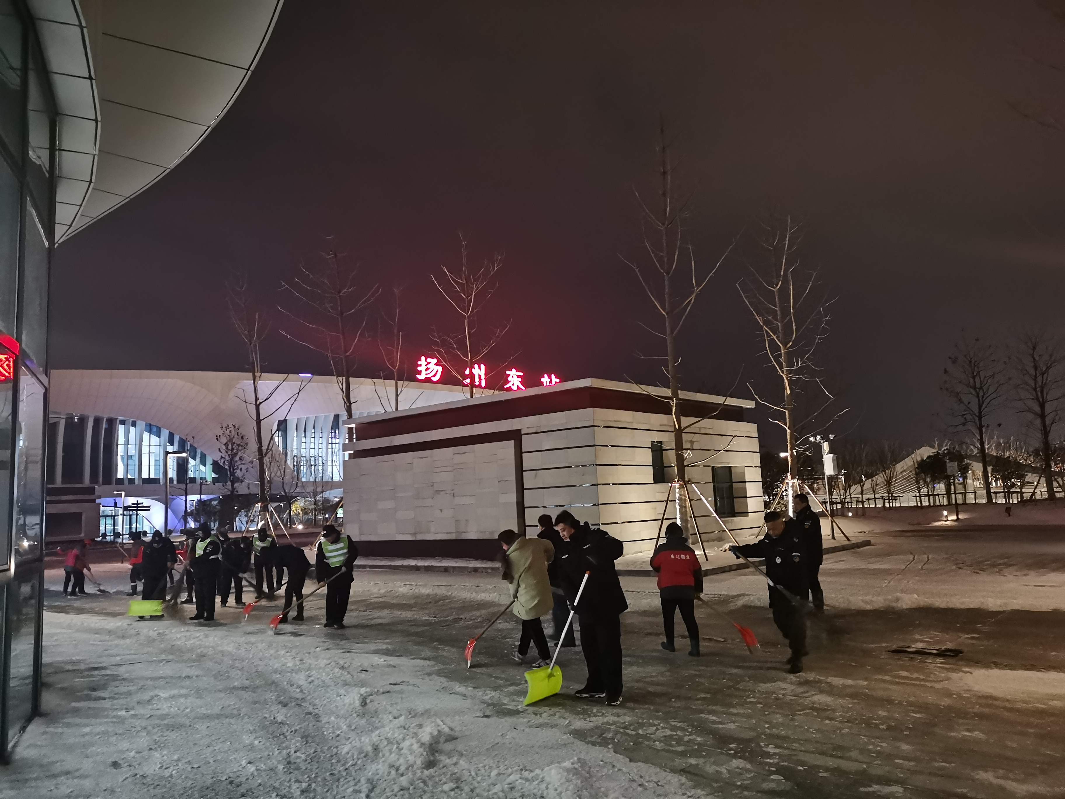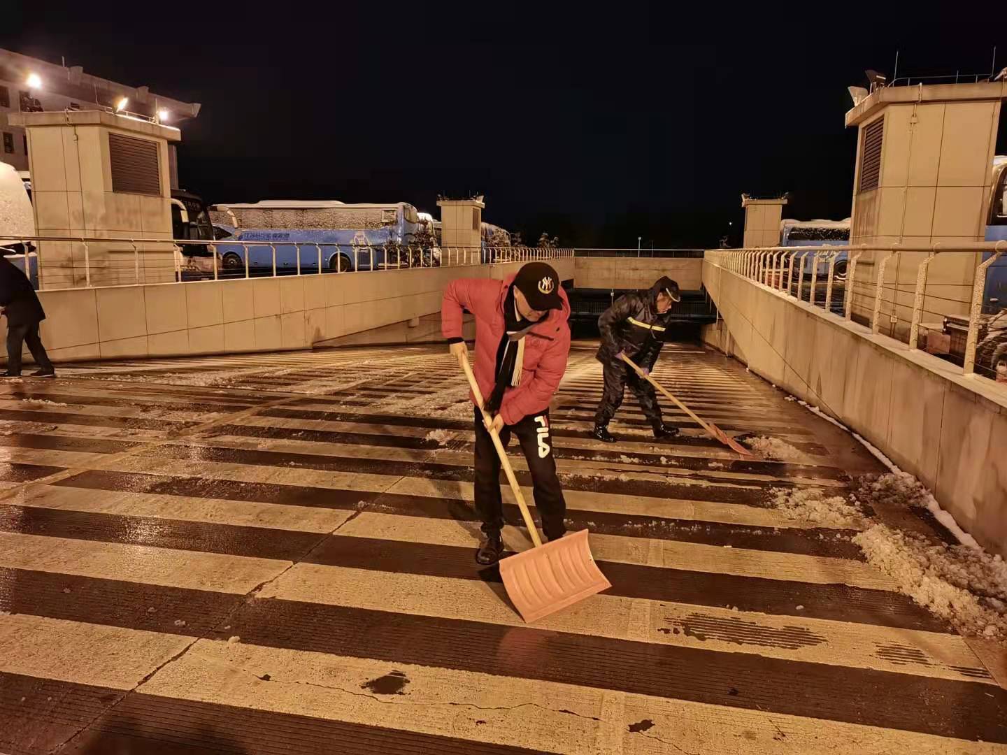 29日晚,車(chē)站連夜鏟雪除冰
