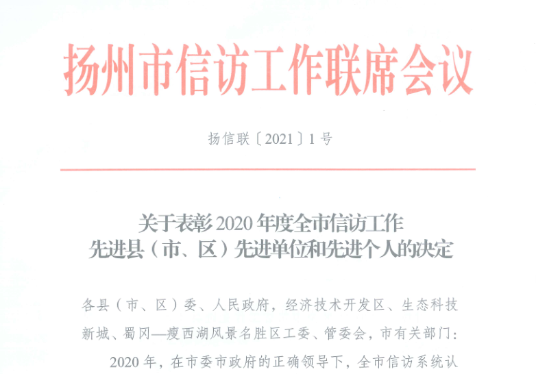 近日,揚(yáng)州市信訪(fǎng)工作聯(lián)席會(huì)議印發(fā)《關(guān)于表彰2020年度全市信訪(fǎng)工作先進(jìn)縣(市、區(qū))先進(jìn)單位和先進(jìn)個(gè)人的決定》,揚(yáng)汽集團(tuán)汽車(chē)東站黨支部書(shū)記、副站長(zhǎng)張彤獲信訪(fǎng)工作先進(jìn)個(gè)人。