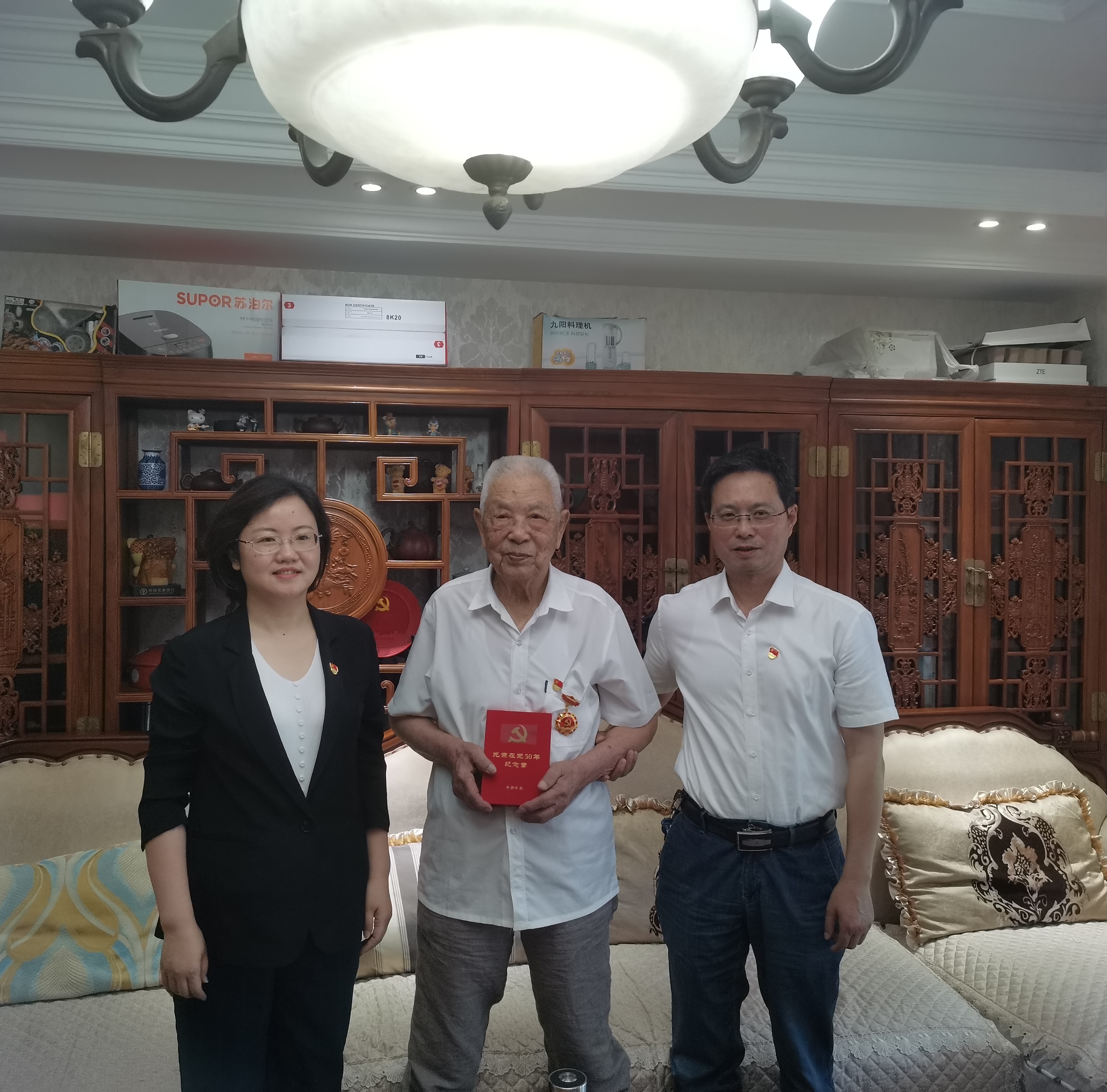 6月23日上午,市交通產(chǎn)業(yè)集團黨委副書記張穎,揚汽集團黨委副書記顧懷走進揚汽老黨員陳樂三同志家中,為他送上“光榮在黨50年”紀念章,對老黨員長期以來為黨的事業(yè)發(fā)展所做出的貢獻表示衷心的感謝。