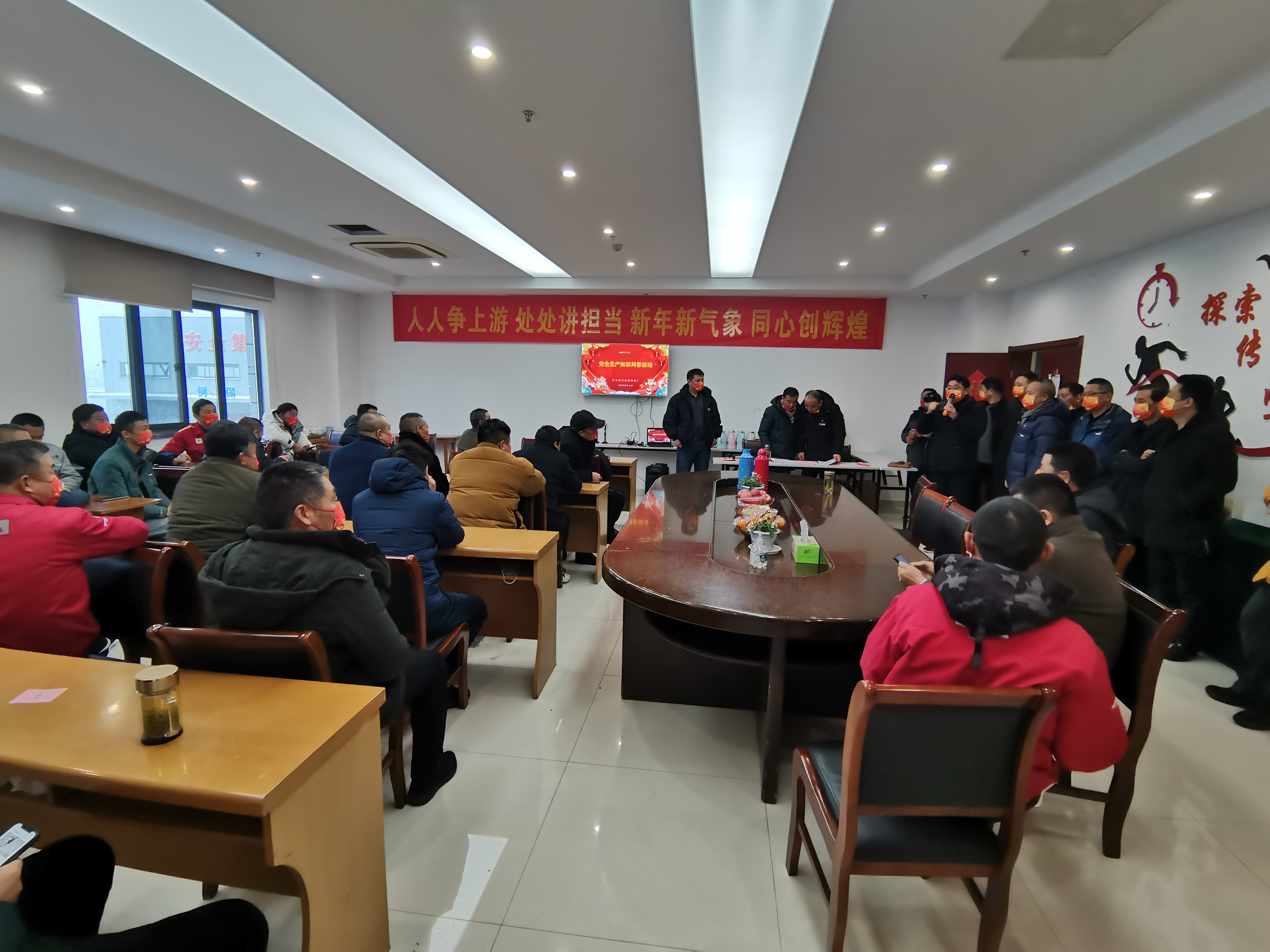 活動(dòng)中,修理廠負(fù)責(zé)人首先向廠部全體干部職工致以新春的問候和美好的祝福,對(duì)上一年來(lái)的辛勤付出表示感謝。隨后,本次“安全生產(chǎn)知識(shí)問答”正式拉開序幕 ,大家爭(zhēng)先搶答,踴躍答題,過程非常激烈,進(jìn)一步增強(qiáng)大家的安全生產(chǎn)意識(shí)。